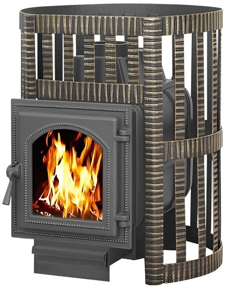 Конвекционно-вентилируемый кожух под камни "Ковка" изготовлен из металлической текстурированной полосы покрашенной термостойкой краской и покрытая патиной «Бронза». Конструкция печи без выносного топливного канала позволяет топить прямо из помещения парилки