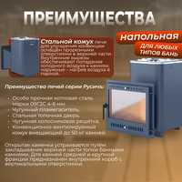 Банная печь везувий Русичъ Антрацит 22 Панорама "М" 2022 – это конвекционная печь, предназначенная для установки в парной объемом от 12 до 24 кубических метров. Изготовлена из особо прочной котловой стали марки 09Г2С толщиной 4-6 мм, что обеспечивает долговечность и надежность конструкции. Особенностью данной модели является наличие скошенных углов в нижней части боковых стенок топки, что упрощает уход за топочным пространством и повышает эффективность сгорания дров. Канал для подачи вторичного дожига расположен на задней поверхности топки и проходит снизу, из поддувала, вверх, в дымосборник, что усиливает горение в верхней части печи и повышает количество получаемой от топлива энергии. Стальной кожух печи оснащен прорезными отверстиями в верхней части, что улучшает конвекцию и обеспечивает нагрев воздуха в парной. Открытая каменка устраивается путем закладывания верхней части топки банными камнями, а для камней средней и крупной фракции предусмотрен внутренний короб с вертикальными отверстиями. Дверка, пламегаситель и колосник печи изготовлены из чугуна, что увеличивает их прочность и срок службы. Интенсивность подачи воздуха в зону горения регулируется зольным ящиком совкового типа. Банная печь везувий Русичъ Антрацит 22 Панорама "М" 2022 имеет следующие характеристики: - Отапливаемый объем: 22.0 м³ - Топливо: дрова - Функции: регулировка уровня пламени - Подключение к дымоходу: заднее и верхнее - Вторичный дожиг: Да - Материал корпуса: сталь - Цвет: черный Выбирая банную печь везувий Русичъ Антрацит 22 Панорама "М" 2022, вы получаете надежный и эффективный отопительный прибор, который обеспечит комфортное пребывание в парной и создаст атмосферу настоящей русской бани.