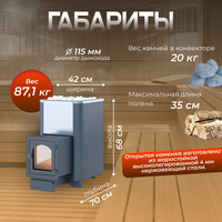 Печь для бани дровяная везувий Сенсация 22 Антрацит (ДТ-4С) диаметр 115