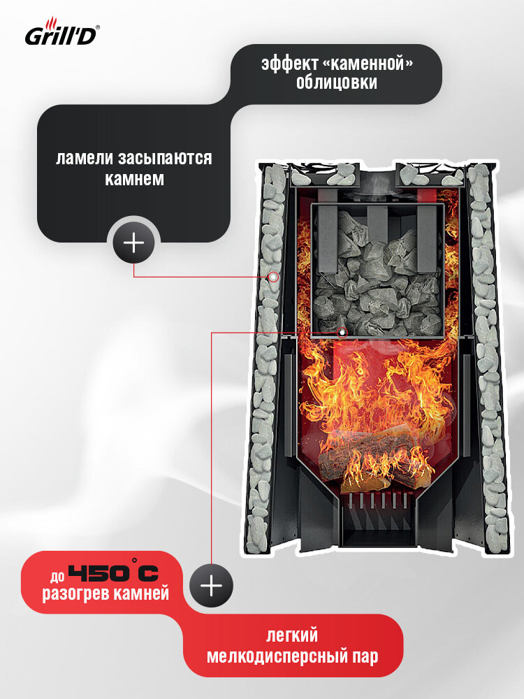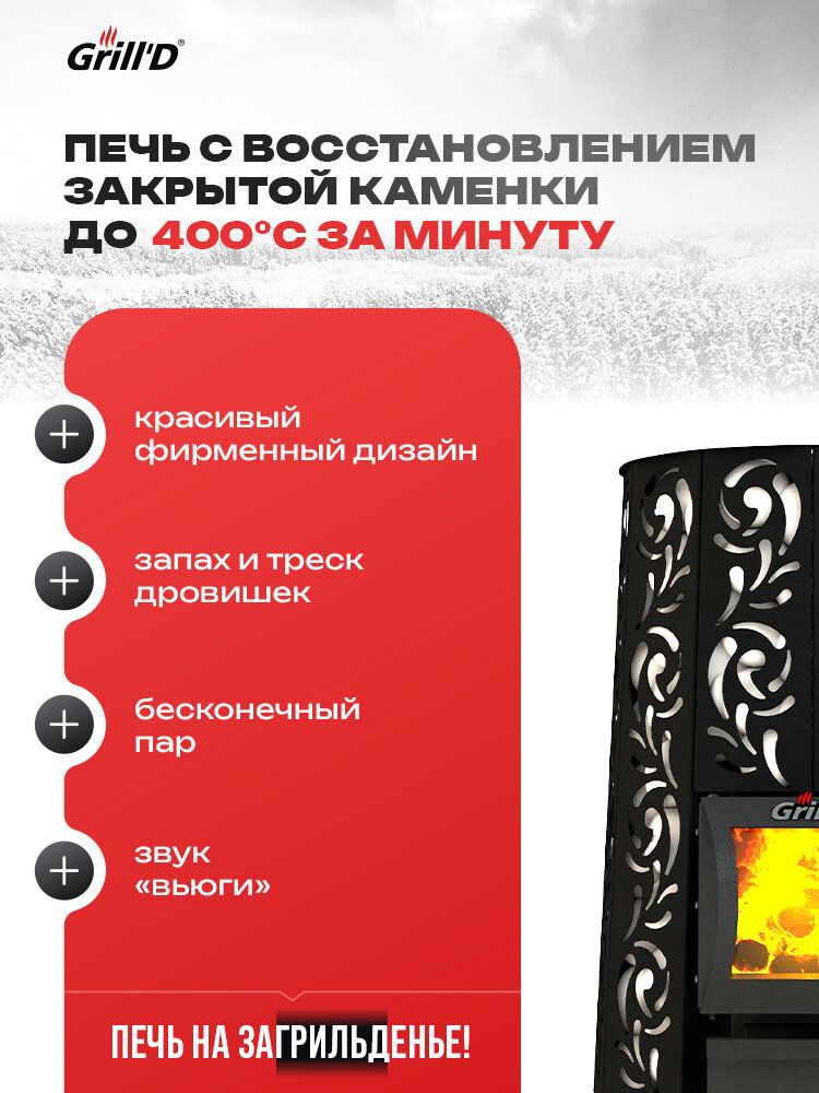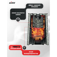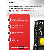 - Мгновенное восстановление. Всего за 1 минуту каменка разогревается до 400°C, обеспечивая постоянную готовность к парению.