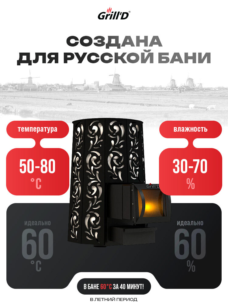 Дровяная печь для бани Grill'D Violet Long — это гармония оригинального дизайна и профессиональной мощности. Эта банная печь с закрытой каменкой, нагревающейся до 400°C, создает насыщенный легкий пар, который оценят истинные ценители русской бани. Модель предлагает уникальные возможности для создания идеальной атмосферы парения.