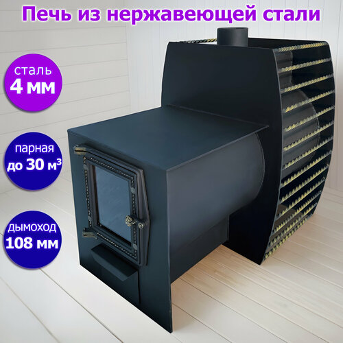 - Такая печь идеально подойдет для обогрева парной объемом до 30 кубометров. Она обеспечит быстрый и эффективный нагрев воздуха, а также прослужит многие годы благодаря качественным материалам и продуманной конструкции.