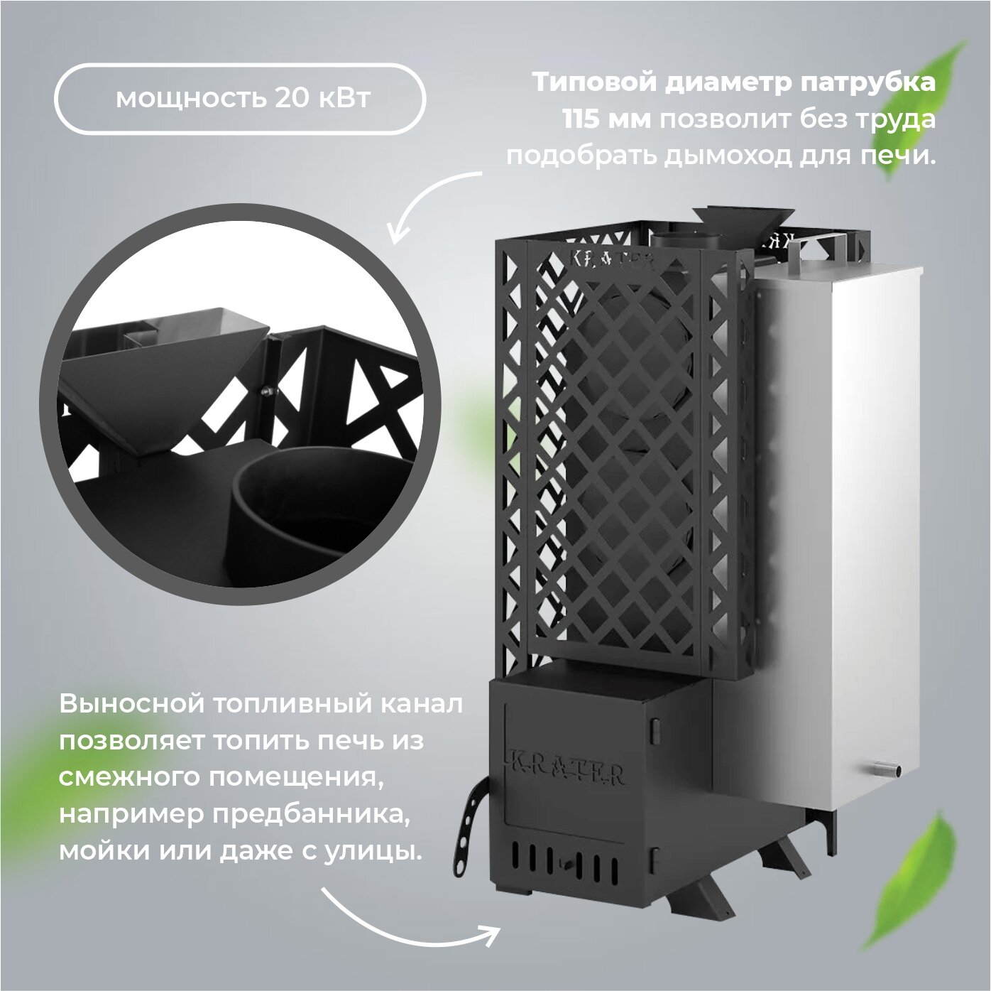 Печь для бани "Кратер 20" бак - это высококачественная банная печь, которая станет отличным выбором для любителей комфортного и здорового отдыха.