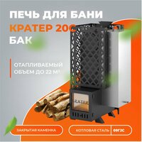 Стальной кожух-конвектор значительно ускоряет нагревание воздуха в парилке за счет образуемого им мощного воздушного потока. Топочная дверка с регулировкой подачи воздуха. Универсальный парогенератор проходит через каменку-трубу, обеспечивая получение мелкодисперсного пара. Глубокая невентилируемая каменка-труба из стали 09Г2С толщиной 4 мм прогревается открытым пламенем для максимального нагрева камней, заложенных в нее и выполняет роль пламегасителя. Большая масса камней, закладываемых в сетку-кожух печи, обеспечивает стабильность температуры в парилке и является мощным парогенератором. Длинная колосниковая решетка из массивного литьевого чугуна обеспечивает равномерное и мощное горение дров. Съёмное дно топочной камеры облегчает уход за печью и контроль состояния поддувального пространства.