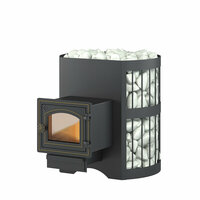 Печь оснащена напольной установкой и кожухом "под камни", что позволяет создать атмосферу настоящей русской бани.