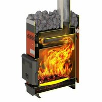 Открытая каменка вмещает в себя около 25 кг. камней. Качественный и равномерный прогрев камней происходит за счет дымосборника, который непосредственно контактирует с камнями и нагревается сильнее любых других элементов печи.