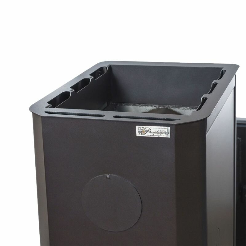 Внимание: печь идет с глухой дверцей. Стекло докупается отдельно. Печь Варвара Паленица без контура удлиненная подходит для обогрева парных объемом до 24 м3. Топка печи изготовлена из конструкционной стали толщиной 6 мм. Система двойной конвекции позволяет Варваре быстро прогревать как парилку, так и каменку самой печи. Выносной топливный канал длиной 300 мм. позволяет топить печь из смежного помещения: предбанника, моечной или комнаты отдыха. Дополнительно к печи можно купить теплообменик или навесной бак из нержавейки.