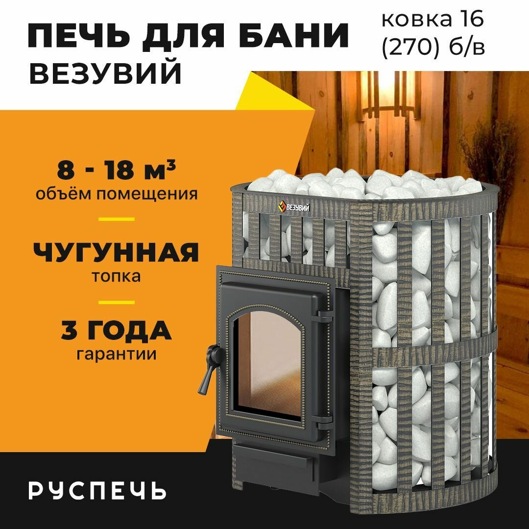Печь для бани Везувий Легенда Ковка 16 (270) без выноса дровяная чугунная со стеклом: сравнение цен, характеристики, фото, актуальное наличие и цены.