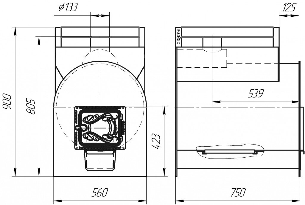 Печь для больших парных с простой и надежной конструкцией. Банная печь Стандарт 750 У(сталь 8мм) – это классическая печь из трубы для парных до 50 м. куб. с возможностью установки бака для нагрева воды. Причем бак на выбор можно установить на трубу, навесить на заднюю стенку печи, либо с помощью теплообменника подключить выносной бак под теплообменник. Долговечность печи обеспечивается за счет надежной топки цилиндрической формы, толщиной 8мм, которая отлично выдерживает термоциклические нагрузки. К тому же, конструкционная сталь, из которого выполнена топка, отличается хорошей теплопроводностью, именно поэтому у данной модели очень высокие показатели теплоотдачи. Технические характеристики: Объем парильного помещения min, куб. м-30 Объем парильного помещения max, куб. м-50 Толщина корпуса топки, мм-8 мм Диаметр дымохода, мм-133 Гарантийный срок, лет-20 Вид топлива: дрова Ширина, мм-540 Глубина, мм-790 Высота, мм-820 Масса, кг-132 Масса закладываемых камней, кг -130 Длина закладываемых дров, мм-720 Способ организации процесса топки: с парильного помещения, предбанника Срок службы, лет - 20