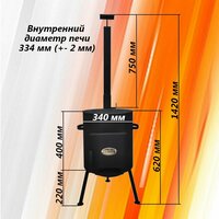 Печь для чугунного казана от производителя «Вятская печная компания» - это отличный выбор для готовки на открытом огне. Печь под казан с трубой изготовлена из стали толщиной 3 мм, покрыта термостойкой краской. Внутренний диаметр печи 334 мм (+- 2 мм). Печь под казан на трёх несъемных устойчивых ножках. Печь для казана с трубой, труба съемная. Печка с трубой обеспечит хорошую тягу с возможностью регулировки и равномерное сгорание дров. В трубе дымохода вмонтирован шибер для управления пламенем. По бокам печка под казан имеет круглые ручки для удобной транспортировки. Три варочных кольца изготовлены из экологически чистого и долговечного материала - чугуна, который не выделяет вредных веществ, не прогорает и меньше коробится от высокой температуры. Плита печная выполнена в виде варочной поверхности и одной встраиваемой конфорки, состоящей из трёх отдельных чугунных, что позволяет изменять размер отверстия в зависимости от посуды. Между варочными кольцами имеется тепловой зазор, который компенсирует расширение металла при нагреве. Для отвода золы из топочной камеры в зольник печь казан мангал имеет чугунный колосник. Печка с дверцей, зольником и трубой дымоходом станет Вашей любимой вещью в готовке на природе, на свежем воздухе, дома, на даче, на кемпинге, пикнике. Походная печь под казан с трубой предназначена для приготовления пищи в казане, котле, так же можно поставить садж, вок, афганский казан, решетку-гриль.