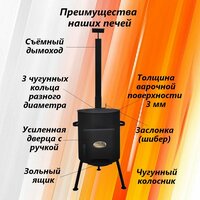 Очаг для костра (учаг), печь туристическая, печь буржуйка, печь под казан с дымоходом, очаг для казана, печь для чугунного казана, буржуйка отопительная, печка под казан -отличный подарок любимому папе, дедушке, мужу, мужчине, парню, другу на 23 февраля, 14 февраля, день рождения, новый год, свадьбу и др. праздники.