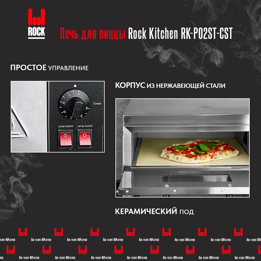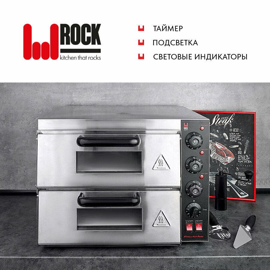 Печь для выпечки Rock Kitchen RK-PO2ST-CST – компактная модель для небольших заведений общественного питания: кафе, закусочных, бистро. Пицца печь поставляется без вилки!
