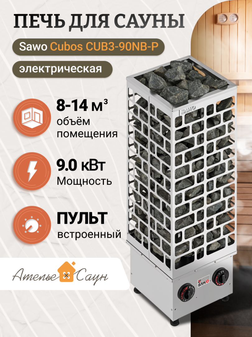 Печь для сауны Sawo Cubos CUB3-90NB-P (со встроенным пультом): сравнение цен, характеристики, фото, актуальное наличие и цены.