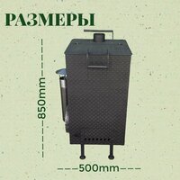 Печь имеет квадратную форму и усиленную конструкцию, что гарантирует ее прочность и надежность. Высота, ширина и глубина печи составляют 850 мм, 500 мм и 500 мм соответственно.