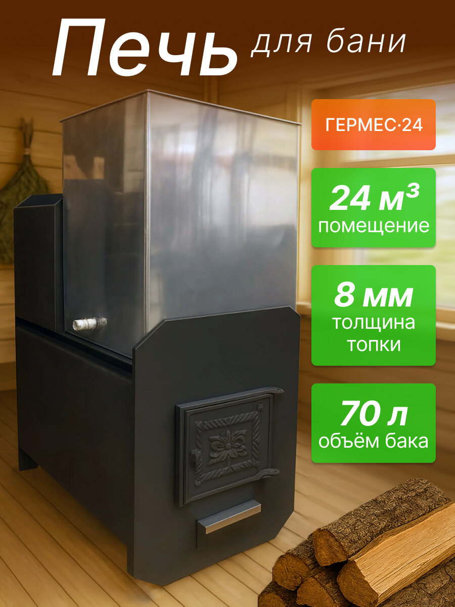 Купить Печь Гермес 24 для бани, толщина 8 мм, с баком 70л, мощность 24кВт с доставкой по всей России. Печь Гермес 24 для бани, толщина 8 мм, с баком 70л, мощность 24кВт: сравнение цен, характеристики, фото, актуальное наличие и цены.