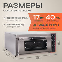 Печь электрическая для пиццы Crazy Pan CP-POL01, 2кВт, 220В, нержав, подовый камень (10 мм), 1 пицца (40 см), для кафе: сравнение цен, характеристики, фото, актуальное наличие и цены.