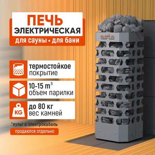 Печи-электрокаменки СТЭН Octa 9кВт предназначены для нагрева воздуха и получения сухого пара в банях и саунах. Электрокаменка напольного исполнения имеет прямоугольную форму с шестиугольными вырезами на всей поверхности, что обеспечивает комфортные условия нагрева помещения и получения пара как с верхней части электрокаменки, так и с боковой поверхности.