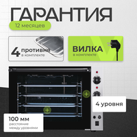 В комплект поставки входят 4 противня размером 318x440x8 мм, что позволяет приготовить сразу несколько блюд. Материал корпуса - нержавеющая сталь, что гарантирует долговечность и надежность печи.