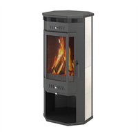 Печь-камин предназначена для отопления жилых помещений общим объёмом до 180 м³. Шестиугольная в проекции форма печи-камина позволяет размещать её как в углу комнаты, так и возле стены. При этом тепловая эффективность прибора не изменяется. Корпус и топка печи изготовлены из особо прочной котловой стали 09Г2С. Для защиты от термических повреждений и для более равномерного распределения тепла, топка печи-камина облицована вермикулитовыми плитами. Вермикулит защищает стенки топки от перегрева, во время работы печи запасает большое количество энергии, которую по окончании топки постепенно отдаёт в окружающее пространство. Для повышения эффективности сгорания топлива в печи предусмотрены:• Вторичный дожиг пиролизных газов. По задней стенке топки проходит канал с регулируемым просветом, через который подаётся дополнительный объём воздуха для горения в верхнюю часть топки. Это способствует более полному сгоранию дымовых газов и повышению КПД печи.• Пламегаситель из вермикулита в верхней части топки. Огнестойкая плита перенаправляет поток дымовых газов, заставляя максимум их сгорать в объёме топки, нагревая боковые и заднюю стенку печи. Подача воздуха для горения происходит через поддувало. Ручка управления объёмом подаваемого воздуха расположена на передней стенке двери. Дверь в печи-камине ASTON 11кВт с вертикальным тройным остеклением, что позволяет контролировать состояние топки и любоваться огнём из разных точек помещения. Керамическое стекло рассчитано на работу при температурах до 650°C. В верхней части двери размещена система дополнительной подачи воздуха на внутреннюю поверхность стекла. Этот воздушный поток отсекает дымовые газы от стекла и предотвращает засаживание и оседание копоти. Чугунный колосник на дне топки расположен поперечно, под ним размещается удобный зольный ящик. Верхняя крышка и стенка топки образуют дополнительный горизонтальный конвекционный канал, нагревающий воздух и дополнительно защищающий крышку печи-камина от перегрева. Печь-камин ASTON 11кВт может быть облицована керамическими плитками, а так же плитами натурального талькохлорита или амфиболита. Между облицовкой и стенками печи проходят конвекционные каналы, ускоряющие прогрев помещения за счёт движения нагретого воздуха. Диаметр дымохода печи 150 мм, выход дымохода располагается сзади. Печь-камин ASTON 11кВт - это эффективное отопительное устройство, созданное для обогрева жилых помещений до 180 м³. Шестиугольная форма позволяет удобно разместить печь как в углу комнаты, так и возле стены, при этом сохраняя высокую тепловую эффективность. Корпус и топка выполнены из прочной котловой стали 09Г2С, а вермикулитовая облицовка топки обеспечивает равномерное распределение тепла и защиту от перегрева.