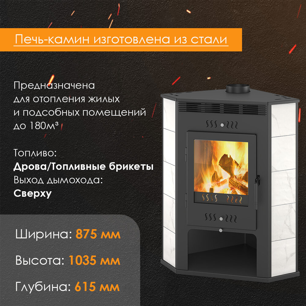 Печь-Камин ASTON 11кВт (180 м3) угловой Ø 150мм дровяная для дома: сравнение цен, характеристики, фото, актуальное наличие и цены.