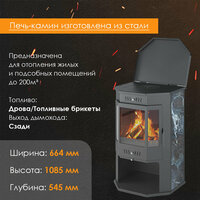 | особенности | варочная панель, дымоход, отсек для хранения дров |