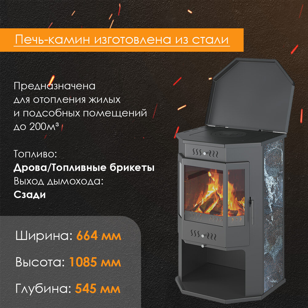 Печь-Камин ASTON 12 кВт (200 м3) Призматик с плитой (Амфиболит) дровяная для дома: сравнение цен, характеристики, фото, актуальное наличие и цены.