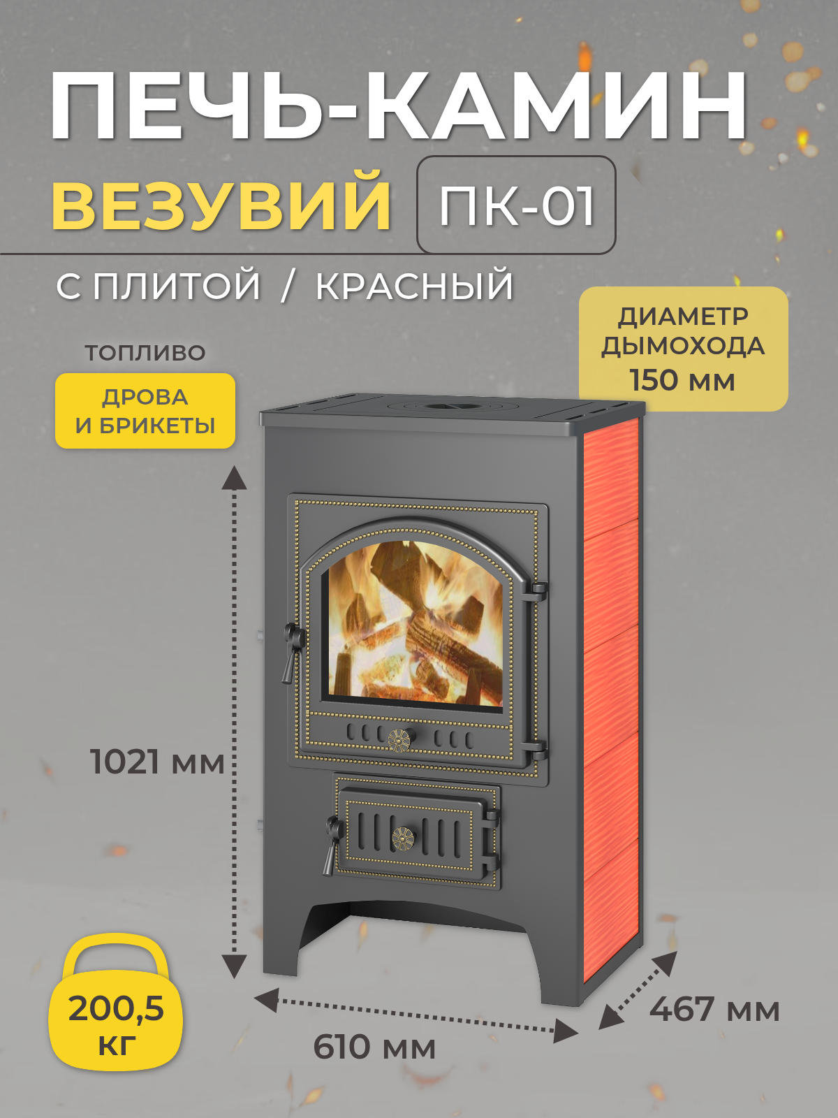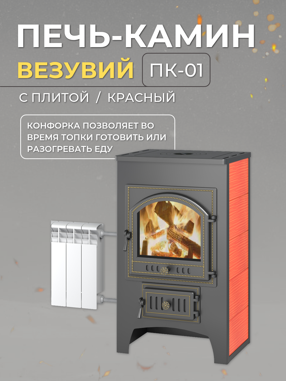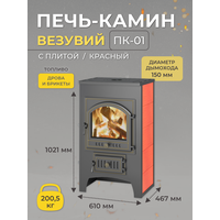 Печь-камин Везувий ПК-01 (205) с плитой и теплообменником, красный,12 кВт (200 м3) дровяная для дома: сравнение цен, характеристики, фото, актуальное наличие и цены.