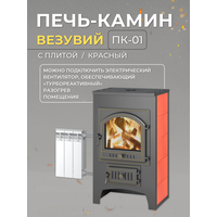 Купить Печь-камин Везувий ПК-01 (205) с плитой и теплообменником, красный,12 кВт (200 м3) дровяная для дома с доставкой по всей России.