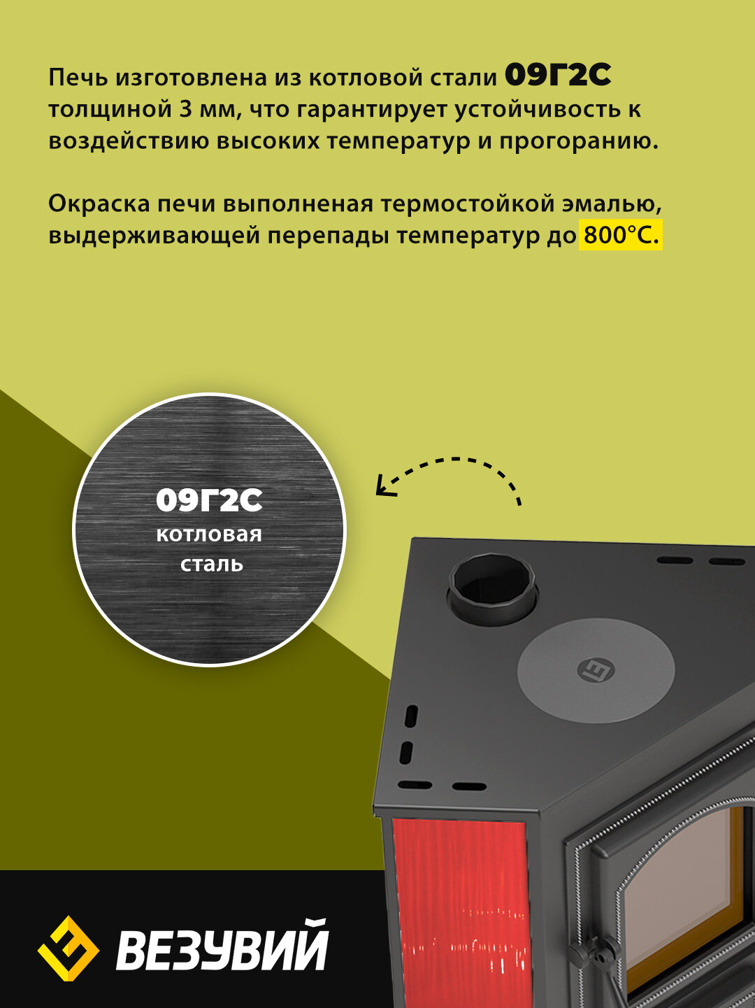 Преимущества углового Печи–камина везувий ПК-01 (220) с конфоркой:Чугунная конфорка Везувий 213.Камин изготовлен из особо прочной котловой стали марки 09Г2С. Чугунная топочная дверь Везувий 220 с жаростойким стеклом. Чугунная поддувальная дверь с системой регулировки режимов горения.Чугунная колосниковая решётка.Топка футерована легкозаменяемым высококачественным шамотом.Керамические боковые вставки.Мощность ПК-01 9 кВт (150 м3).Длительность горения одной закладки дров до 5 часов.*Внешний вид товара может незначительно отличаться от фотографий на сайте