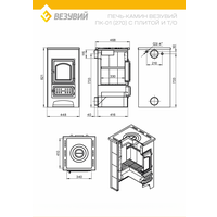 Печь-Камин везувий ПК-01 (270) с плитой и т/о беж. 9 кВт (150 м3) 115 мм