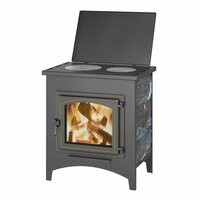 Наличие верхней чугунной плиты с двумя конфорками позволяет использовать печь-камин для приготовления пищи. Стальная крышка для верхней поверхности печи позволяет закрыть конфорки, обеспечивая дополнительную безопасность использования печи-камина.