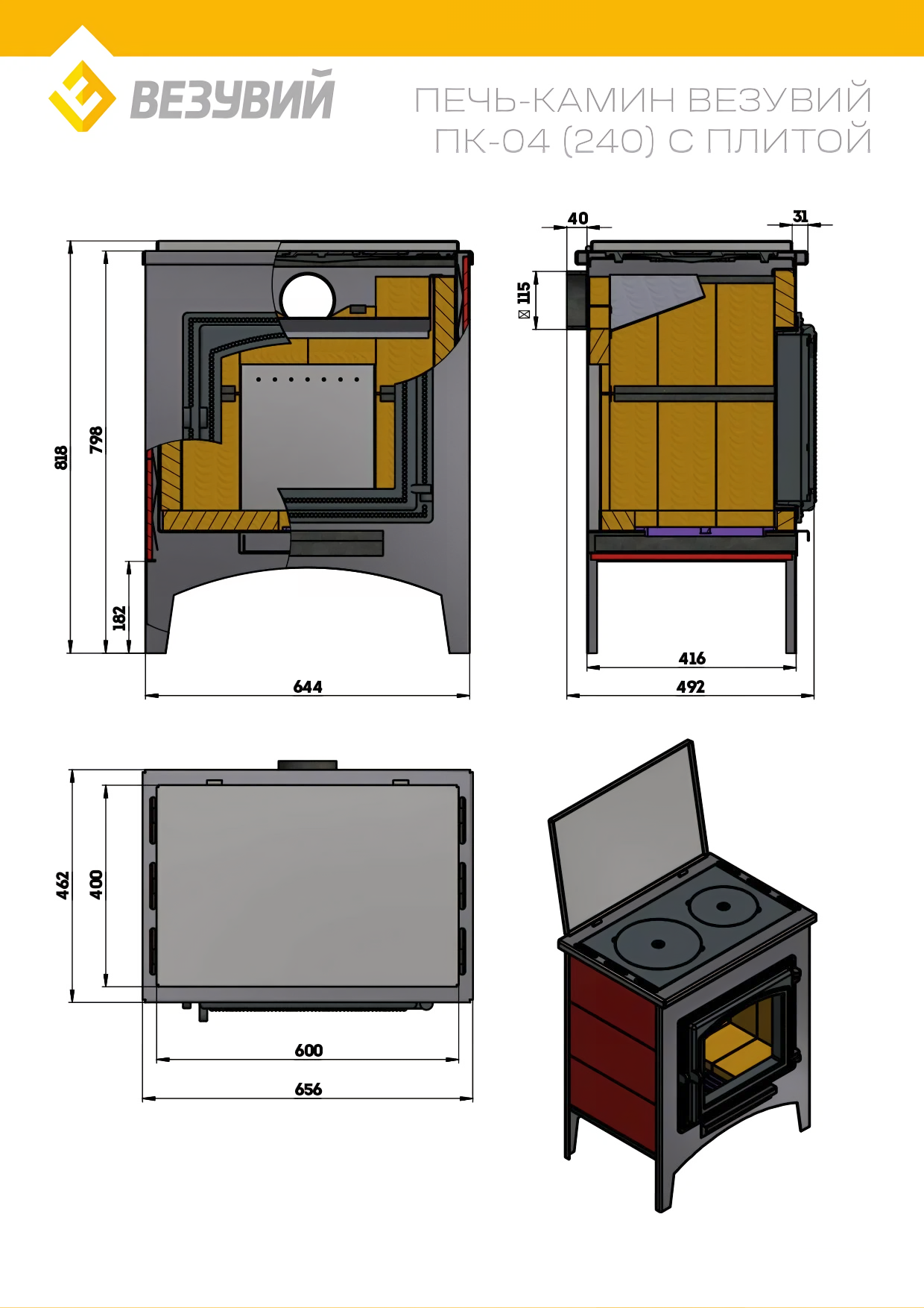 Печь-Камин везувий ПК-04 (240) с плитой «Везувий В3» бежевый 12 кВт, диаметр дымохода: 115 мм: сравнение цен, характеристики, фото, актуальное наличие и цены.