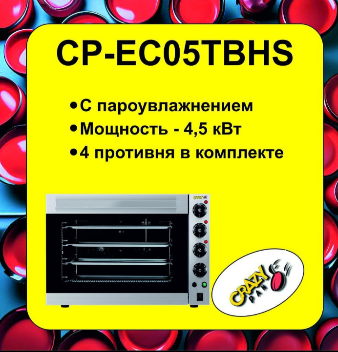 Печь электрическая конвекционная Crazy Pan CP-EC05TBHS, 4.5кВт, 220В, пароувлажнение (подключение к водопроводу): сравнение цен, характеристики, фото, актуальное наличие и цены.