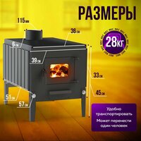 Печь Мастер Буржуйка Комфорт Плюс 100 оснащена съемными ножками и зольником-совком, что облегчает ее установку и обслуживание.