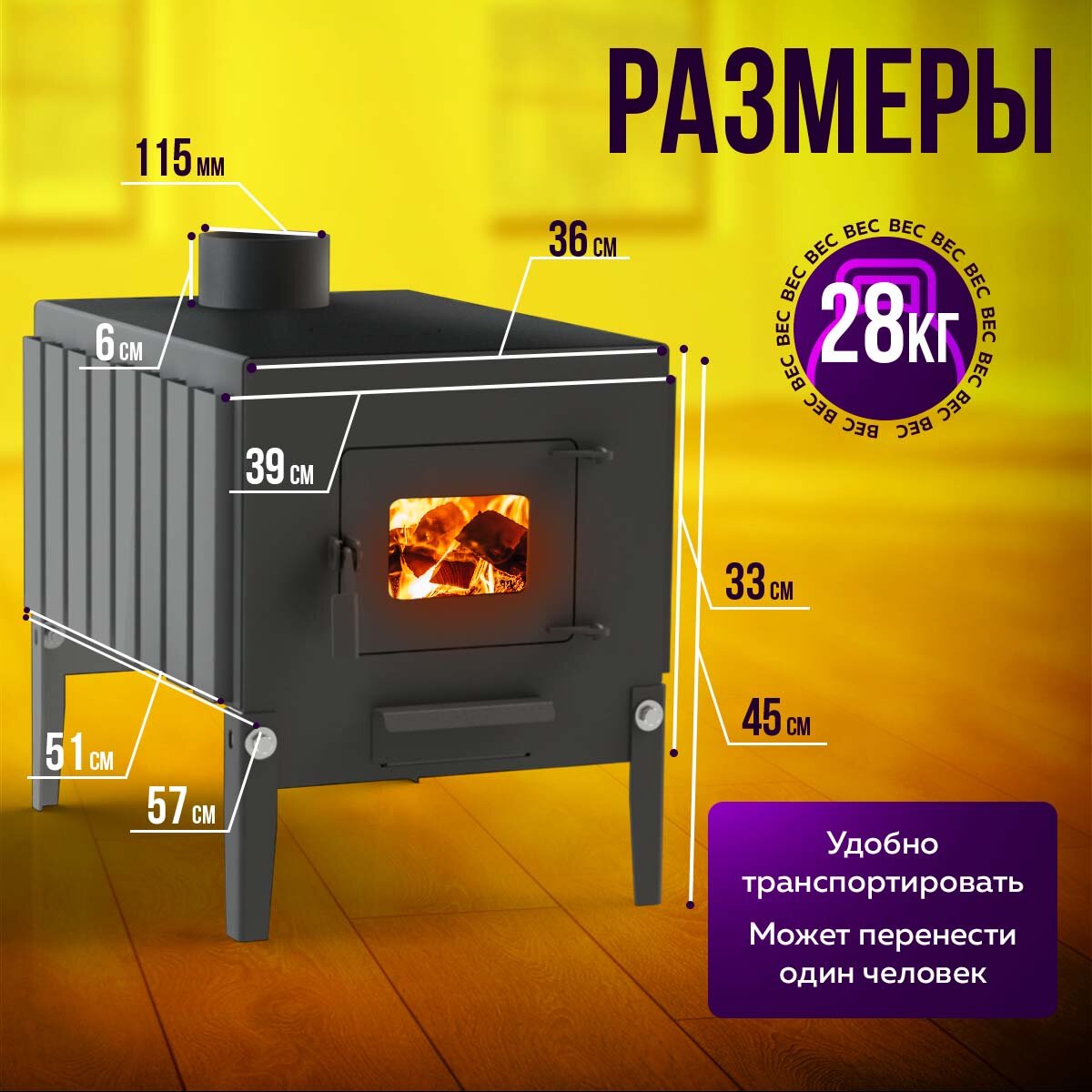 Печь Мастер Буржуйка Комфорт Плюс 100 – это высококачественная печь, которая станет незаменимым помощником в вашем доме или на даче. Благодаря своим компактным размерам (высота – 33 см, ширина – 39 см, глубина – 51 см) и напольной установке, она легко впишется в любой интерьер.