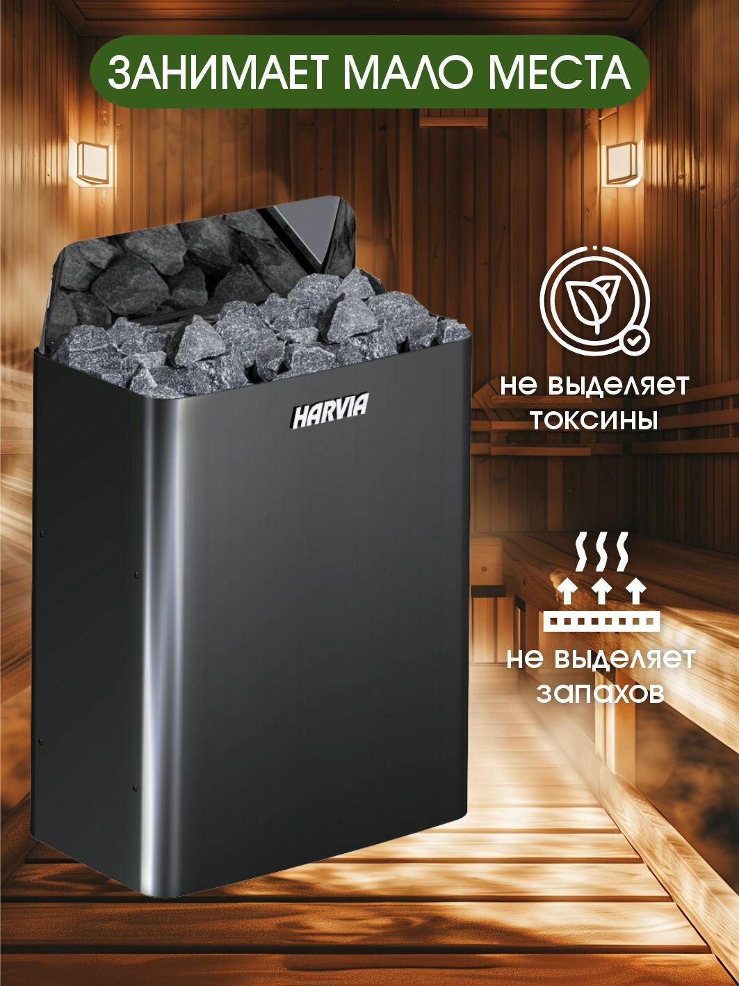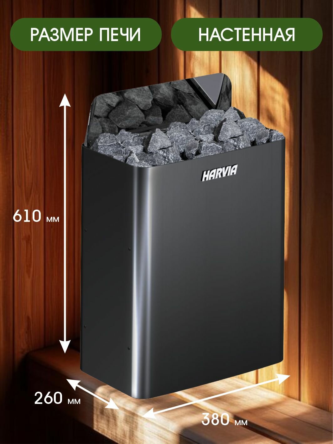 Печь мини электрическая (электрокаменка) настенная без пульта для сауны и бани HARVIA, Wall HSWE450400M SW45E, нерж. сталь: сравнение цен, характеристики, фото, актуальное наличие и цены.