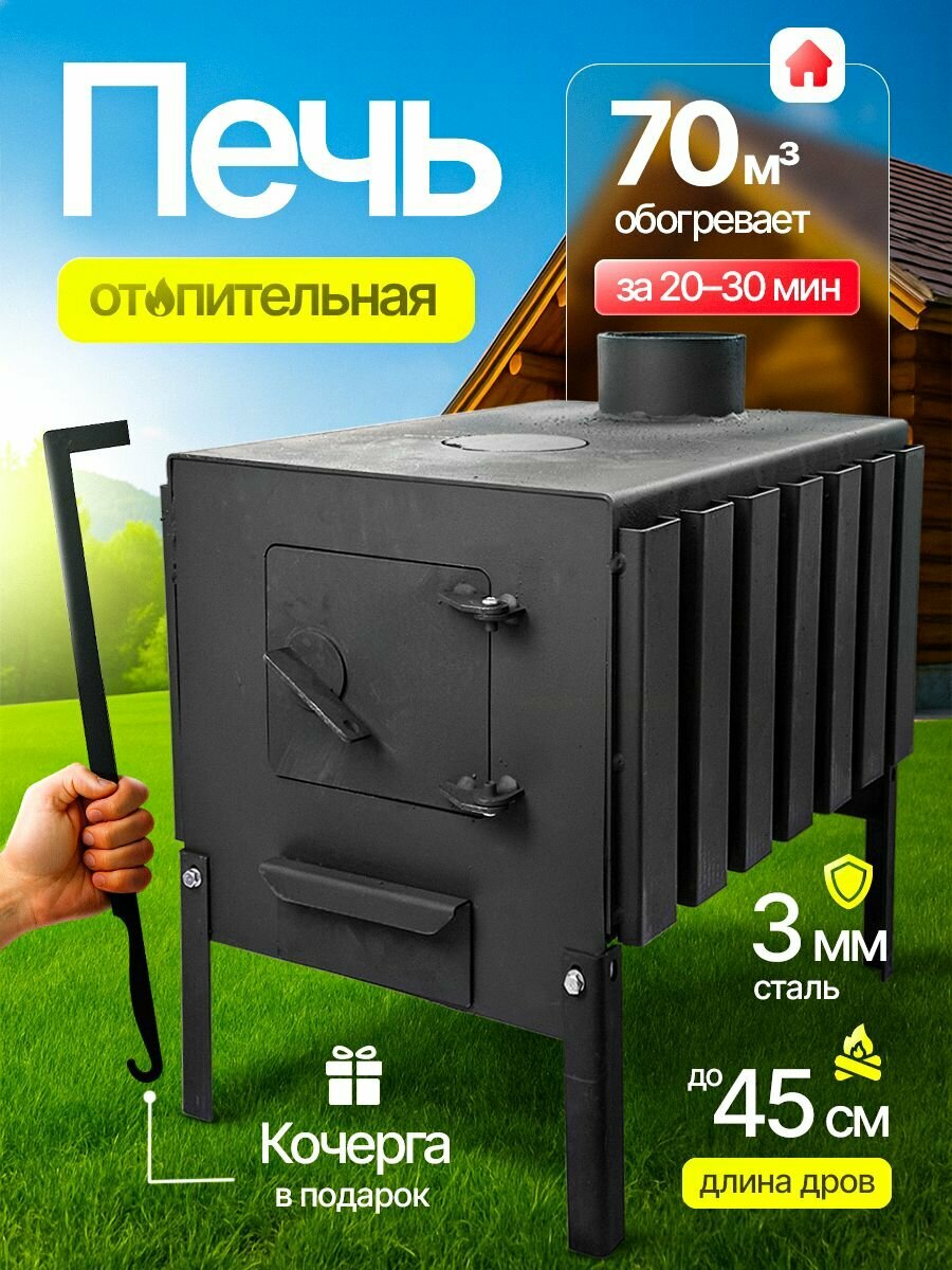 Печь отопительная Буржуйка с конфоркой и боковыми ребрами, 70 м3: сравнение цен, характеристики, фото, актуальное наличие и цены.
