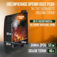 Одной из главных особенностей этой печи является шибер для тонкой регулировки подачи воздуха и камера дожига, которые позволяют достичь функции длительного горения. Это означает, что вы сможете наслаждаться теплом в течение длительного времени без необходимости частой подкачки топлива.