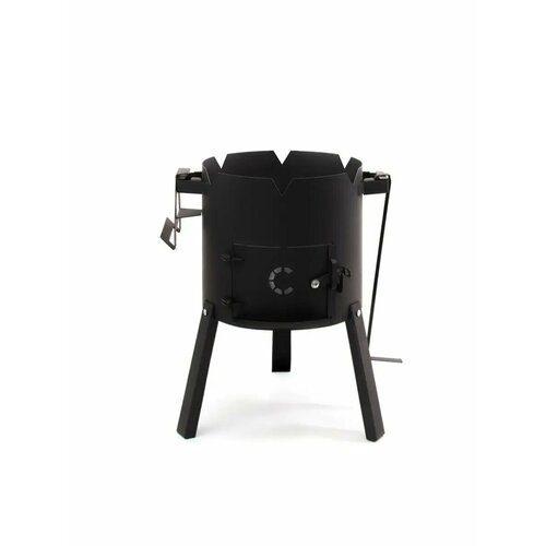 Печь имеет разборную конструкцию, что делает ее удобной для транспортировки и хранения. В комплекте с печью идет подставка под казан, которая обеспечивает устойчивость конструкции и равномерное распределение тепла.