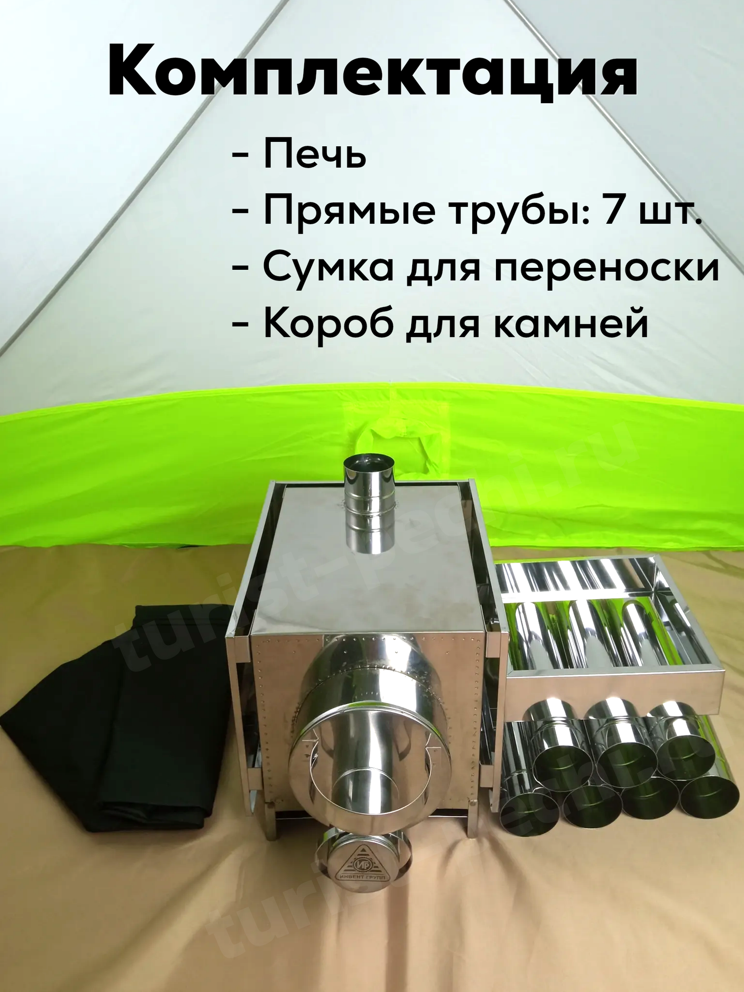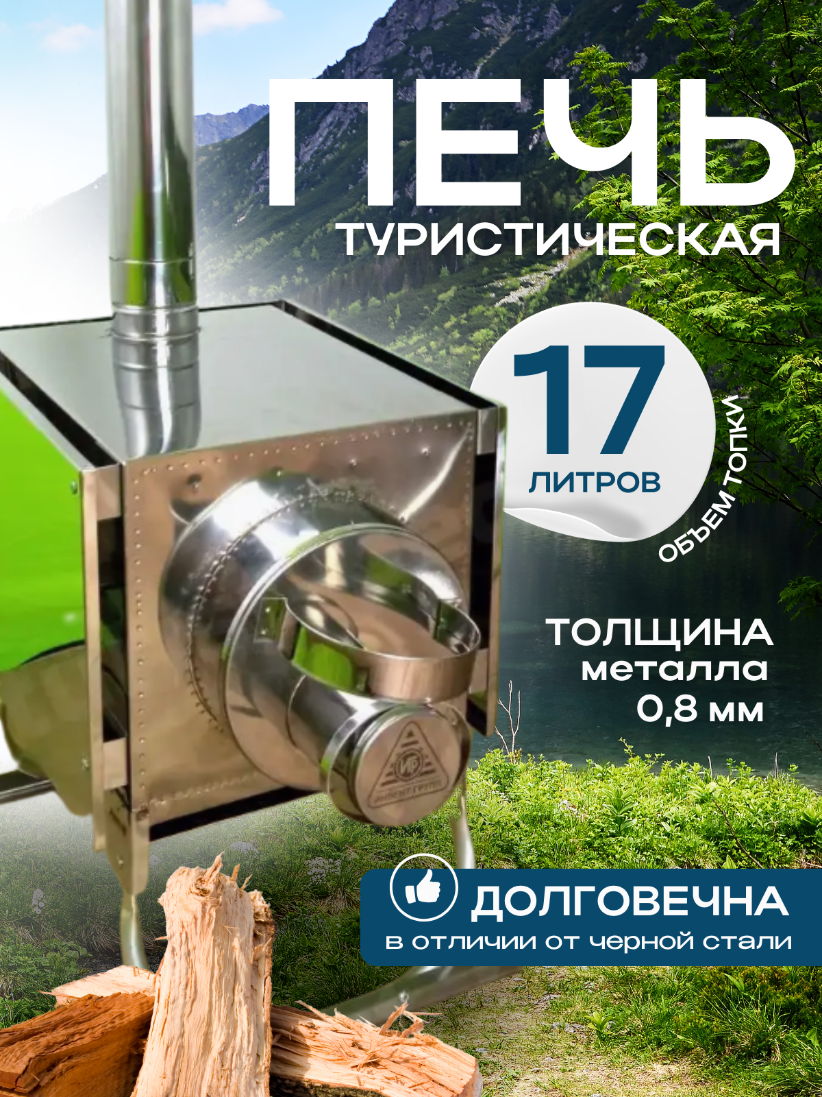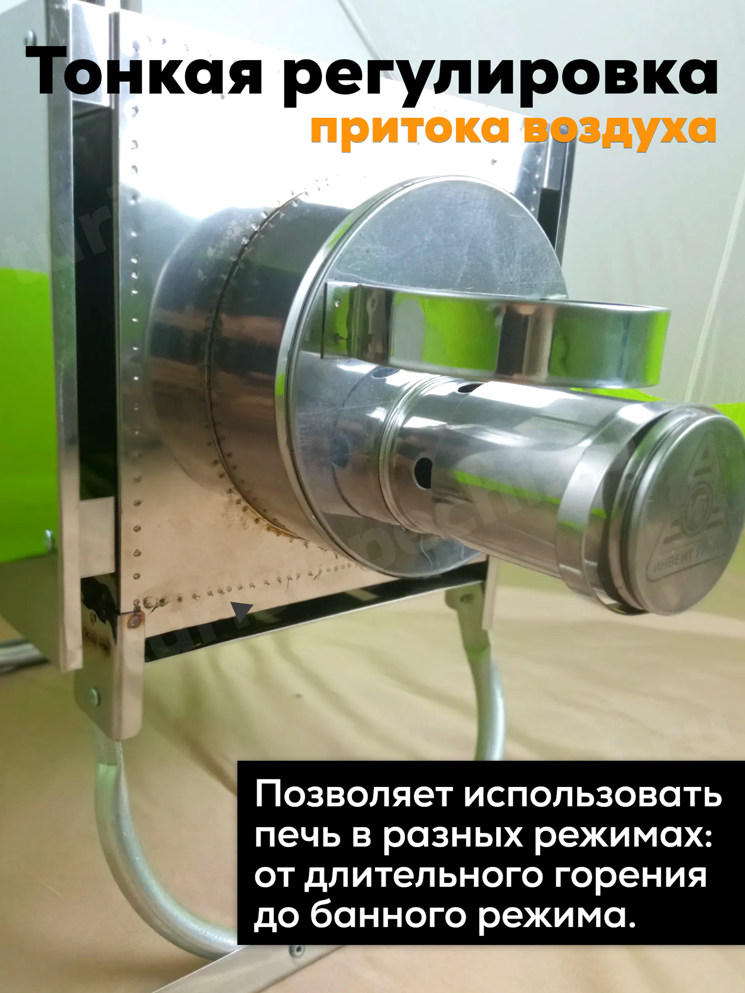 Печь туристическая на дровах для обогрева палатки Инвент Экономка Малая с регулируемыми экранами предназначена для обогрева палатки на рыбалке, охоте, в походе или домика на даче. Так же хорошо подойдет для приготовления пищи в походных условиях или организации походной бани.
