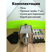 Между искрогасителем и варочной поверхность внутри походной печи вмонтирован П-образный сегмент, который усиливает верх печи и при закладке камней, она не будет проминаться.