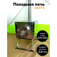 Печь дровяная полностью выполнена из жаропрочной нержавеющей стали 0,8 мм. марки AISI 430, что в разы увеличивает срок ее службы, а так же повышает устойчивость к механическим и температурным воздействиям.
