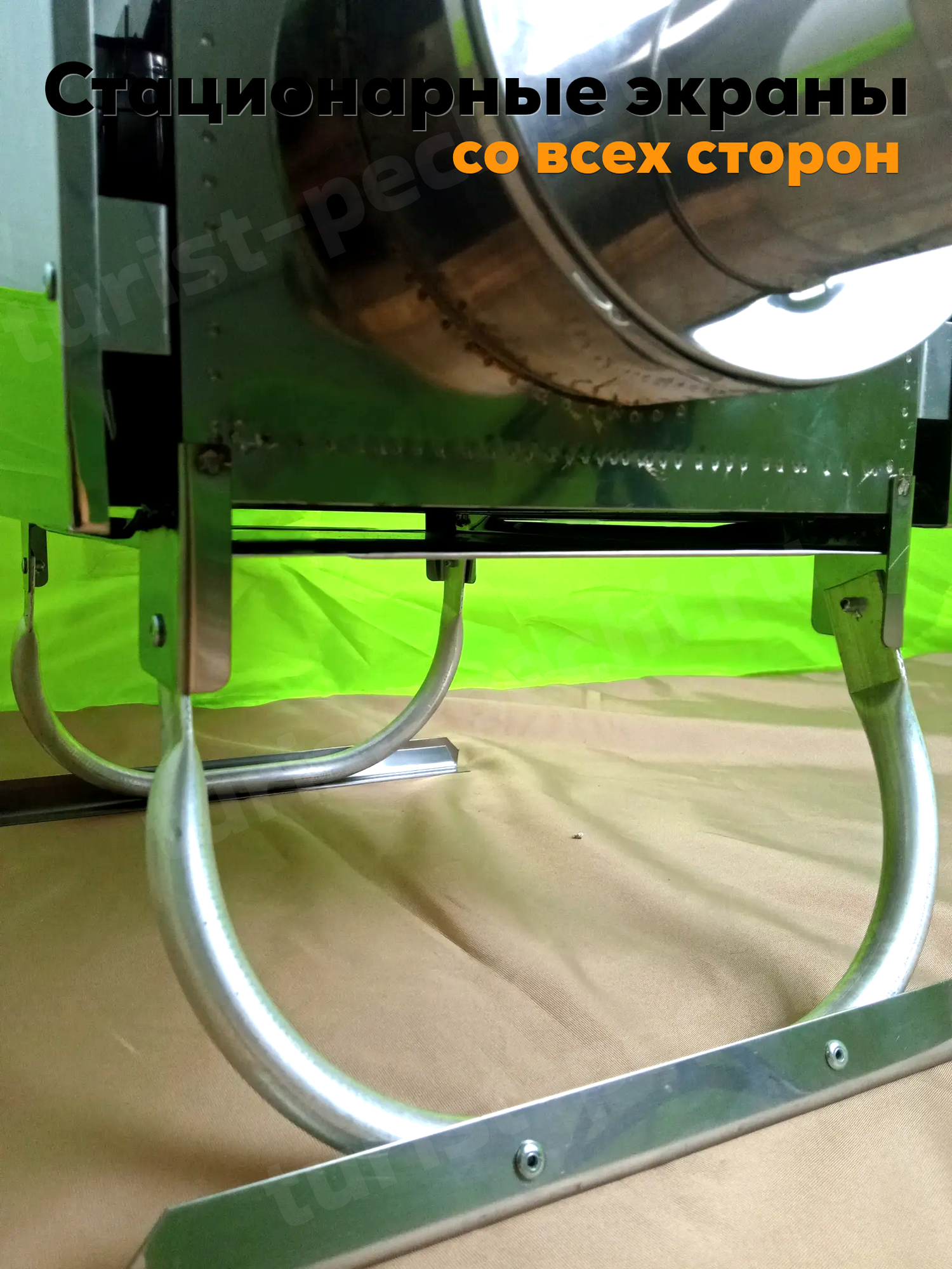 Складные ножки способствуют надежной устойчивости печи для палатки на любой поверхности, высота ножек составляет 15 см. - это необходимо для обеспечения пожарной безопасности.