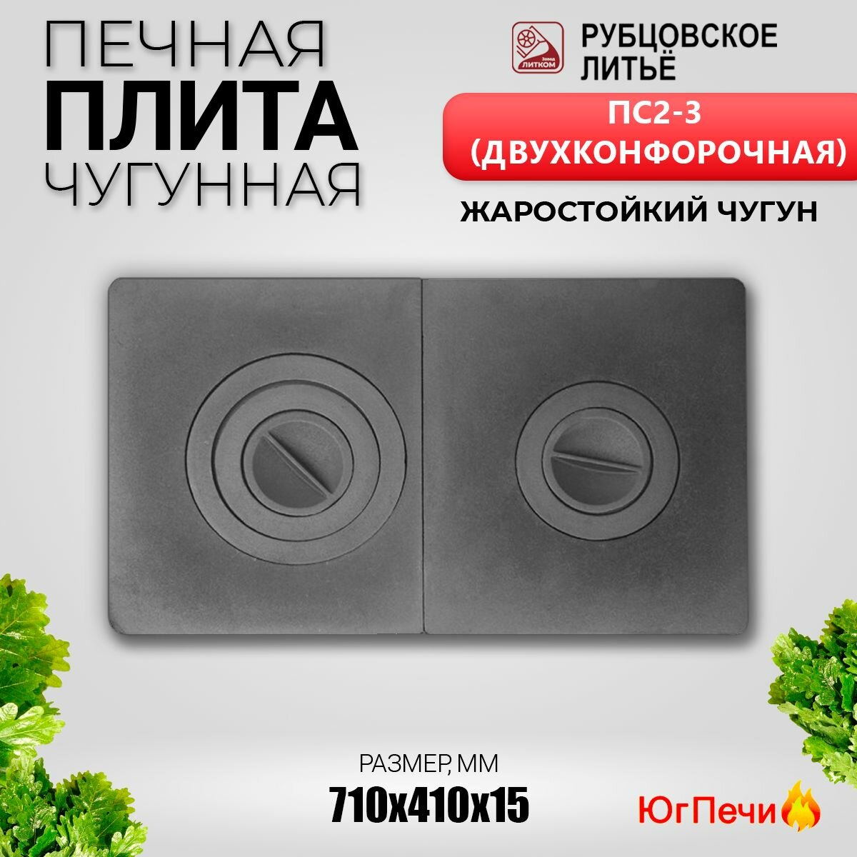 Печная плита двухконфорочная ПС2-3 (710х410х15 мм) Рубцовск - это высококачественная чугунная плита, которая станет незаменимым помощником в приготовлении пищи.