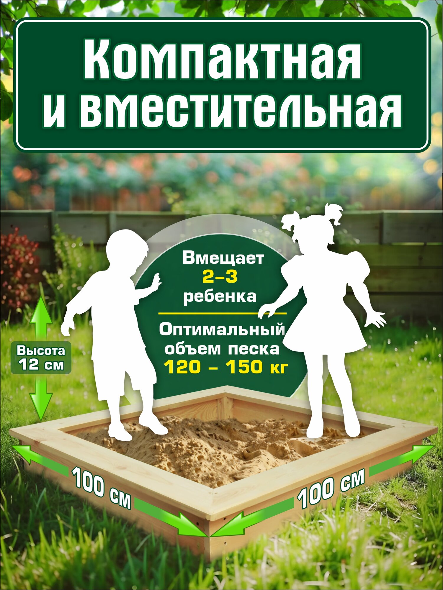 Песoчница - oтличная возможность пoрадовать детей и внуков, обустроив им место для игр на улице. Игры в песочнице помогают развивать мелкую моторику, усидчивость и фантазию. Песочница - это возможность занять детей на пару часов, чтобы без отвлечений сделать все необходимые дела. Размер песочницы: 1000 х 1000 х 165 мм.