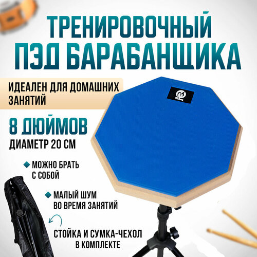 Тренировочный пэд для барабанов со стойкой и чехлом станет отличным выбором для начинающих барабанщиков. Он предназначен для отработки ударов барабанными палочками и может быть использован как дома, так и в студии.