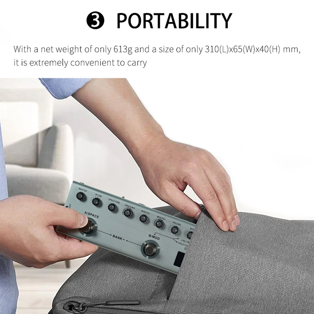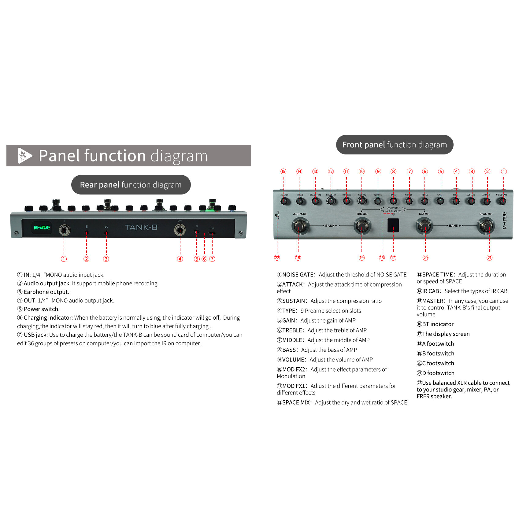 Педаль-эффектор для гитары с цифровыми мультиэффектами реверберация задержка MOD AMP встроенная аккумуляторная батарея литий-ionная (для бас-гитары) M-VAVE Tank-B 36 пресетов 9 слотов для преампов 8 слотов для кабин IR