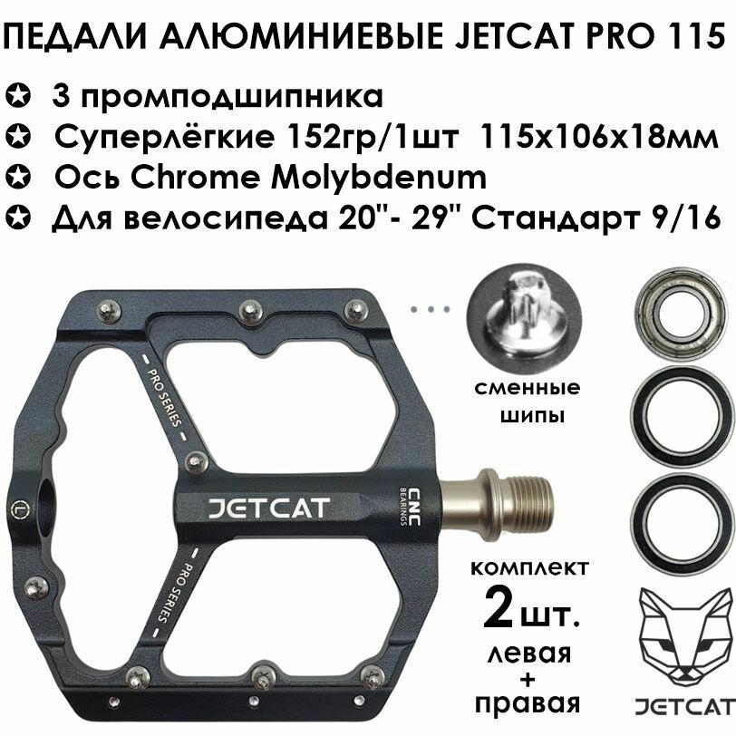 Купить Педали велосипедные — JETCAT — PRO 115 черные — алюминиевые на 3 промподшипниках для велосипедов с доставкой по всей России.