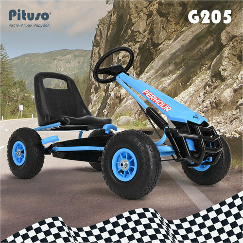 Веломобиль детский педальный, картинг Pituso «G205», надувные колеса, ручной тормоз, регулировка сиденья, цвет синий: сравнение цен, характеристики, фото, актуальное наличие и цены.
