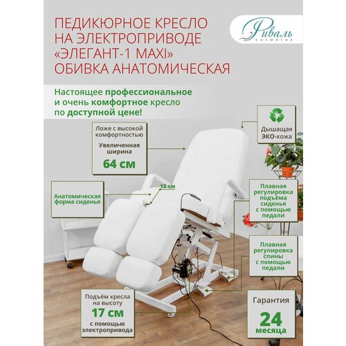 Педикюрное кресло Элегант-1-МАКСИ, 1 мотор, Риваль с белой анатомической обивкой/кресло для педикюра, для тату: сравнение цен, характеристики, фото, актуальное наличие и цены.